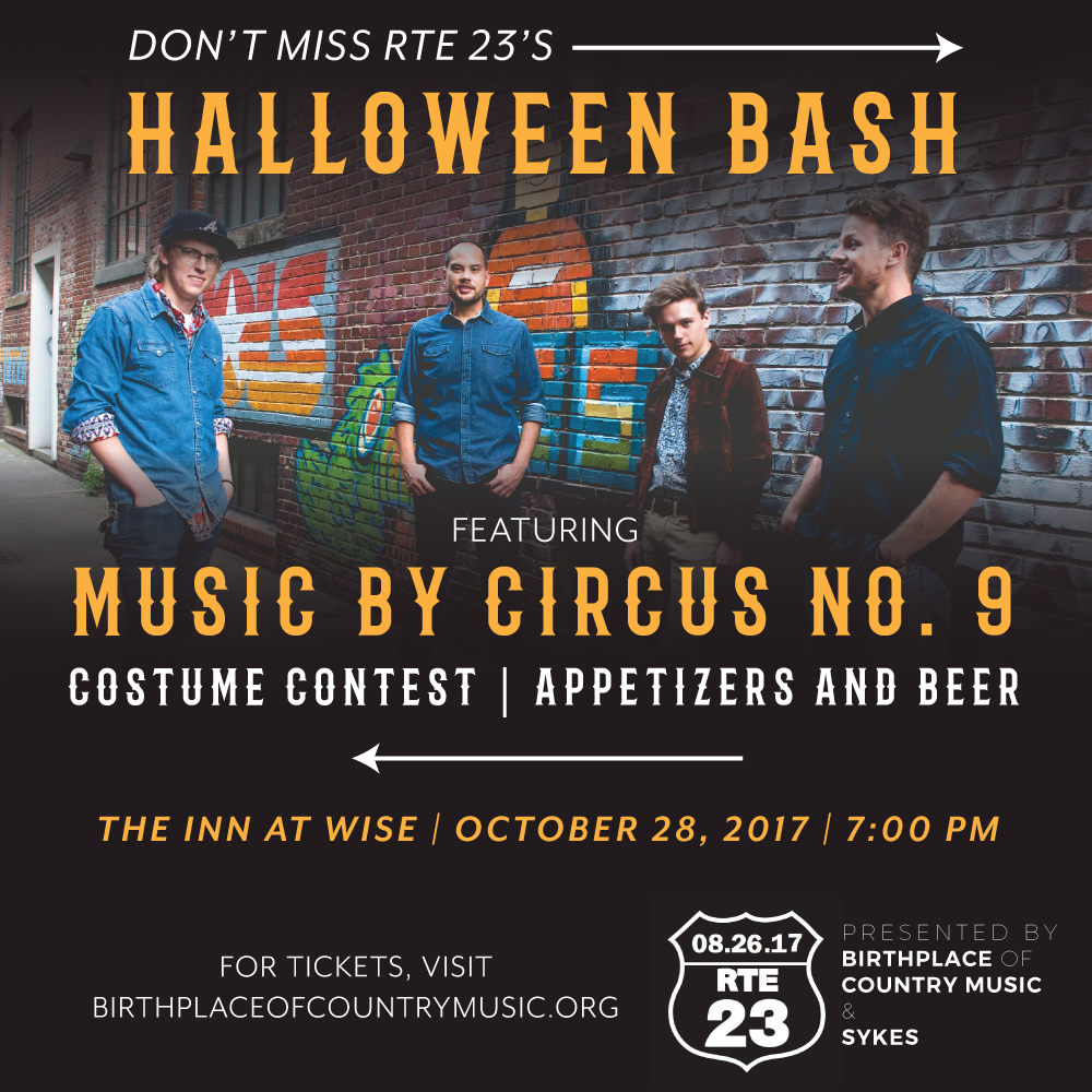 Presented by the Birthplace of Country Music (BCM), the RTE. 23 Music Festival will bring out the haints and hollers for a big Halloween Bash on October 28 at The Inn at Wise in Wise, Virginia!