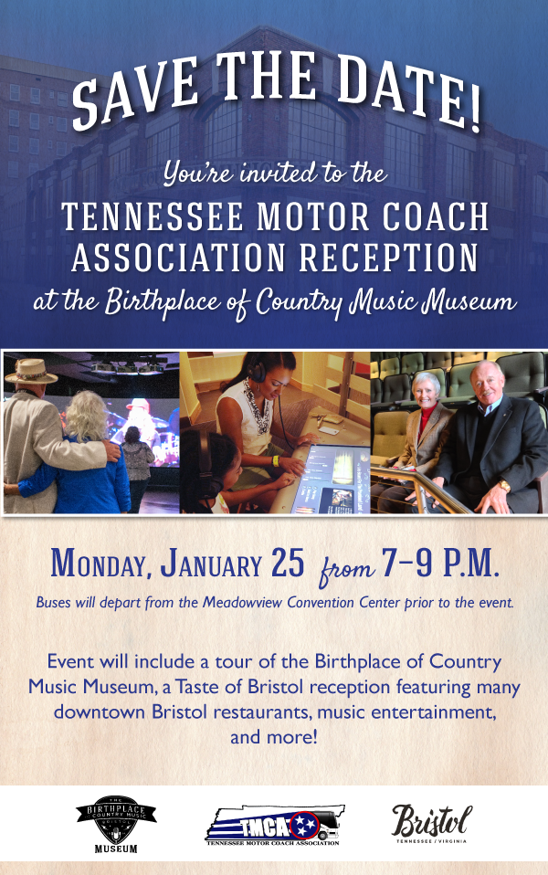 Save the Date – Tennessee Motor Coach Association Reception January 13, 2016 Please note, this invitation is only for attendees of the Tennessee Motor Coach Association Conference.
