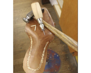 A cowboy boot sole is PEGGED with small wood pegs. Have you ever heard the saying “A square peg in a round hole?” Perhaps you thought that referred to someone who’s out of place, but really, it’s a good thing. The awl that punches the hole is round, but the wood pegs are square and larger than the awl. When you drive a square peg into the slightly smaller round hole, the tension created holds them tightly.