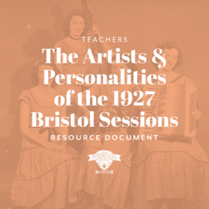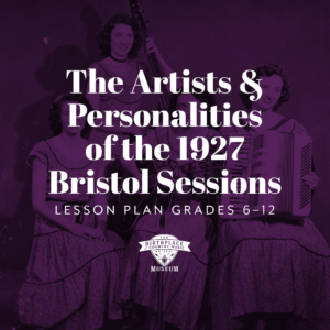 Welcome to the Birthplace of Country Music Museum’s Lesson Plans & Educator Resources! Take a moment to check out our lesson plans, resource guides, audio and video supports, and primary and secondary resources based on museum content and for use in classroom learning and school programs. Learn about the rich history of Bristol, Tennessee-Virginia, why Bristol is recognized as “the birthplace of country music,” and so much more!